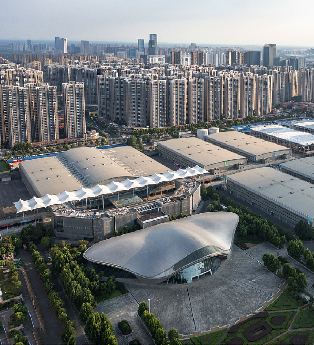 濱湖國際會展中心位于濱湖新區(qū)廬州大道與錦繡大道交口西南角,占地58.62公頃,總建筑面積約33.28萬平方米,建筑包括展...